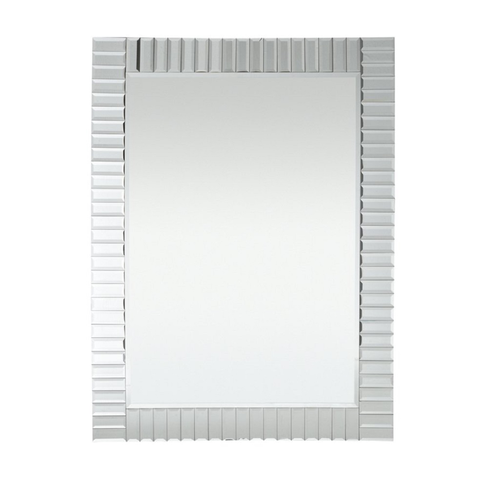 Зеркало современного дизайна с ярким серебряным обрамлением, выполненное из отдельных скошенных зеркальных полос. Это зеркало оснащено четырьмя креплениями и может разместиться на стене как в пейзажной ориентации, так и в портретной.